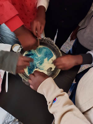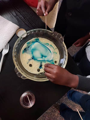 Elizabeth told the children's story one Sabbath. She used oil, food coloring, and water with the kids in a demonstration about sin.